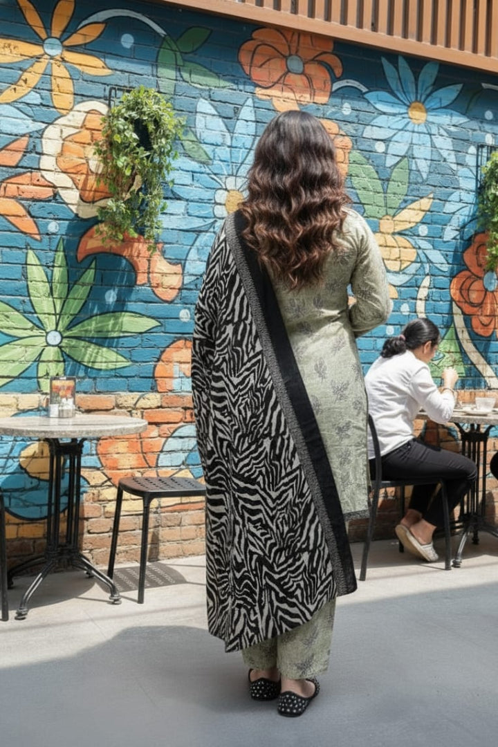 Upgrade your winter wardrobe with ZR2802, a stylish 3-piece stitched outfit made in premium printed khaddar.